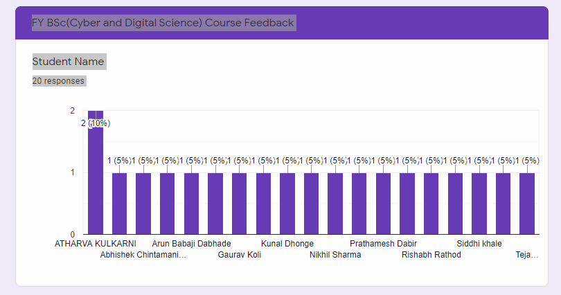 | 2 | 6/7/2021 19:29:11 | ATHARVA KULKARNI | Very Good | Very Good | Very Good | Very Good | Very Good | Very Good | Very Good | Very Good |