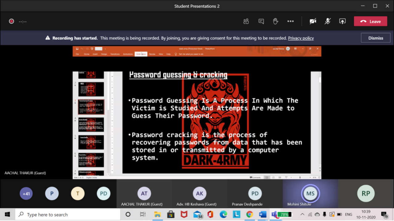 In the 13 day long Lecture series, Adv Keshava explained various terms and facts related to Hacking, supporting each with case studies, for better understanding of the topics. Some of them are mentioned below: